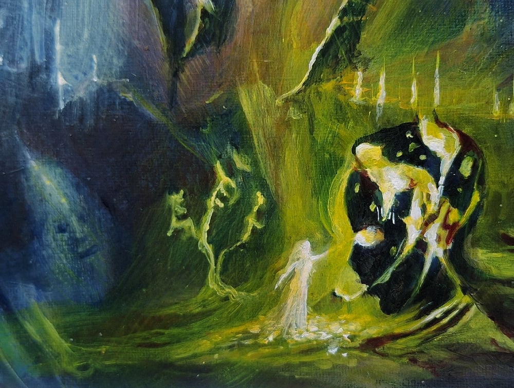 Scried magic art of Imagination painting on canvas board, size 12x10 inches. 2025.