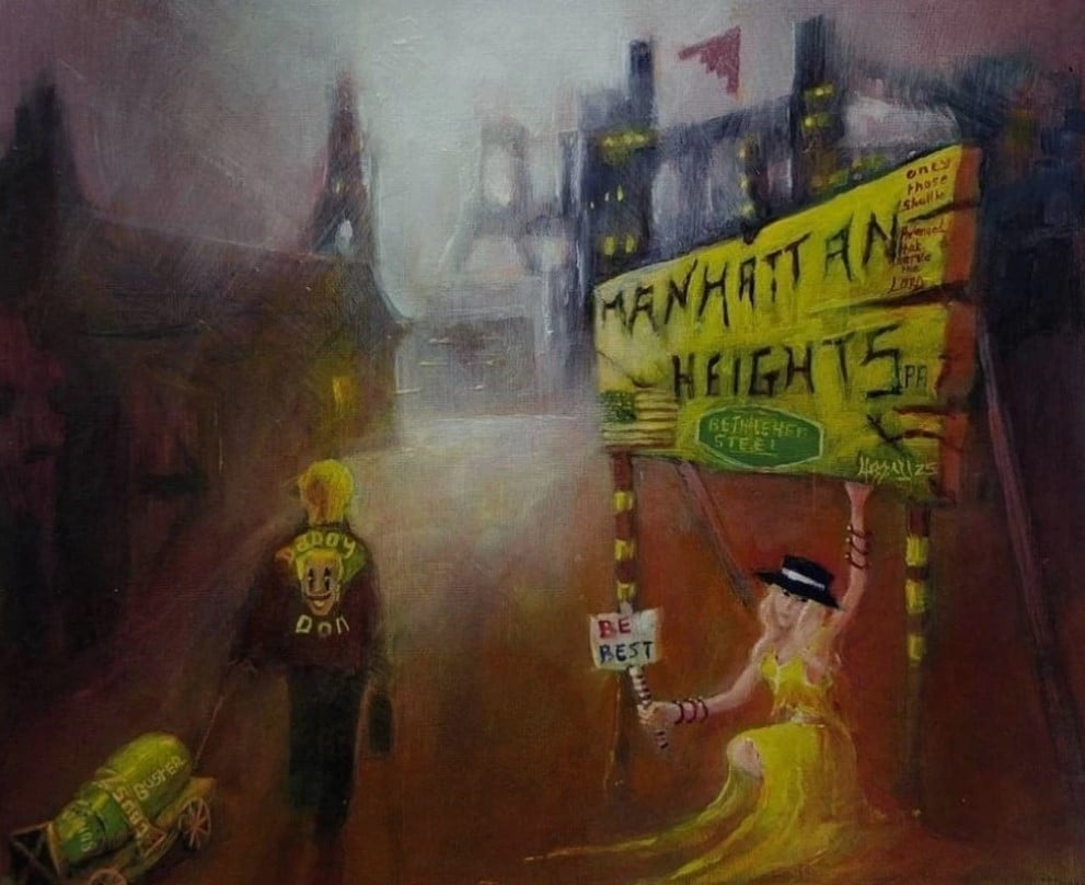 Daddy Don. Bunker Buster GBU-57, Bomb bomb bomb bomb Iran. First Lady Melania, Be Best. Bethlehem Steel, Pennsylvania. USA Northern art painting on canvas board, size 12x10 inches. 2025. Free shipping.