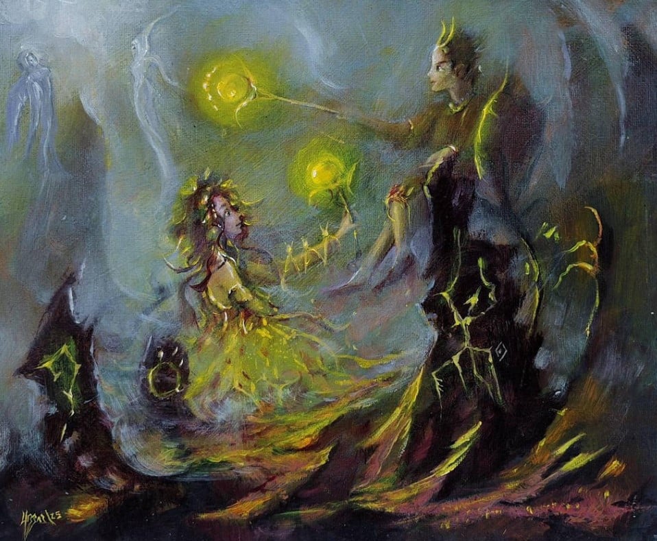 Measuring at 12 inches in length and 10 inches in height, it features a fantasy-style depiction with a multi-color palette on a canvas board painting surface.