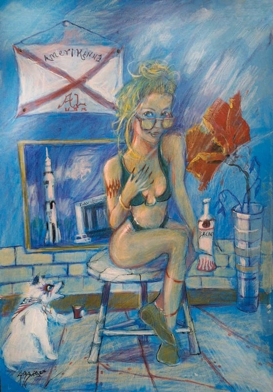 Drawing NASA Pinup. Acrylic paint and pencil. A4 11x8 inches card. Signed and dated 2022