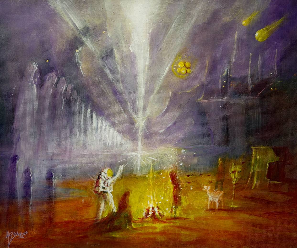 Scried magic art of Imagination painting on canvas board, size 29.75 cm x 25cm.
